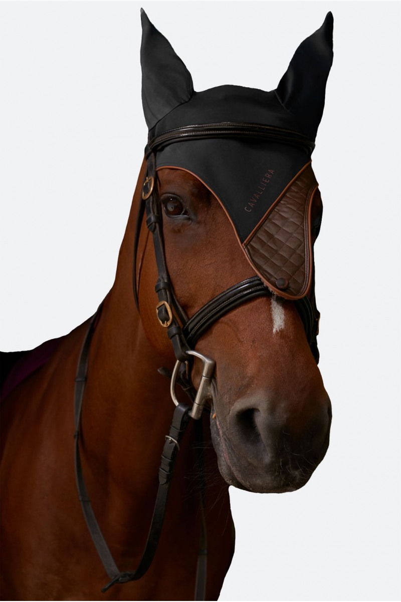 • Μακρύ σκουφάκι αυτιών για τα άλογα, κατασκευασμένο από συνδυασμό τεχνικών υφασμάτων και τεχνολογία CoolPass. Οι ελαστικές μικροΐνες επιτρέπουν στο οξυγόνο να διαπερνάει το ύφασμα και να τροφοδοτεί τα αυτιά του αλόγου. Εκτός από τα τεχνικά πλεονεκτήματα, παρέχει τέλεια προστασία για τα αυτιά ενάντια στις μύγες και τα έντομα. Με κομψό, διαγώνιο κόψιμο και ελκυστική καφέ καπιτονέ λεπτομέρεια. Ένα υπέροχο κομμάτι από την σειρά Majesty. ITT NINCS KATI FÉLE ÍRÁS:)