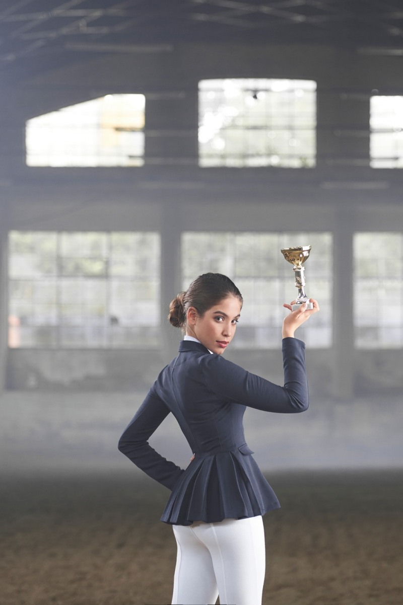 • PURITY Elegant, Feminine Cut Show Jacket Designed with Unique Pleated Bottom and Fine Crystal Buttons