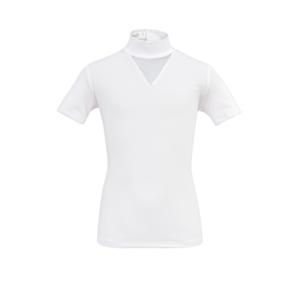 Ez a gyermek versenying nagyon szép megoldással ékesíti a kis lovasát: zárt, magasított nyaka maga egy csipke szalag, mely lágyan öleli át, mégis tartással áll a viselője nyakán. Ez a részletgazdag csipke szalag megjelenik még a vállakon és a mandzsettákon is, így gyönyörű megjelenést biztosít. A test anyaga egy speciális, légáteresztő technikai anyag, mely finom és kényelmes viselet lovaglás közben. (Mosásnál kérjük figyeljen a finom és aprólékos csipke részletek miatt, javasoljuk mosó hálóban, könnyű programmal vagy kézzel mosni.)