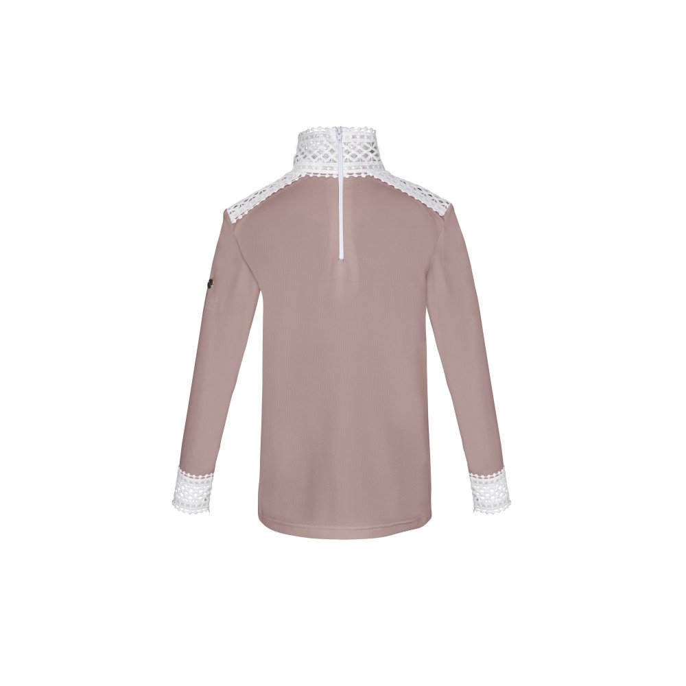 Gyermek versenying lányoknak. Fényes, kissé arany tónusú álló nyak és ujjak díszítik ezt a szép, letisztult versenyinget. Technikai alapanyagainak köszönhetően könnyű viselet, tartós és strapabíró, valamint kifejezetten rugalmas. Bármelyik szakágban javasolt (díjlovaglás, díjugratás, szabadidő lovaglás... stb.) (Mosásnál kérjük figyeljen a fényes szatén részletek miatt, javasoljuk a terméket mosó hálóban, könnyű programmal mosni.)